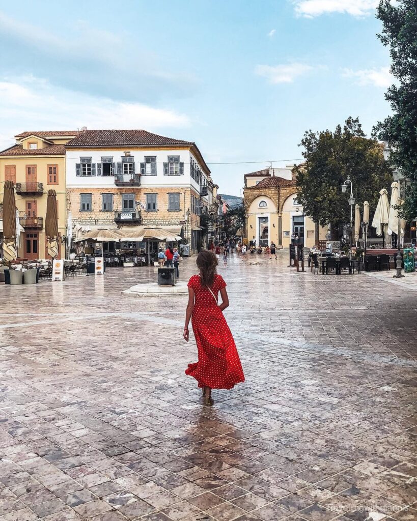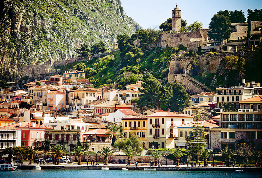Viewed from above, Nafplio oozes romance : tile roofs, grand homes and a blue-green sea. The famous Bourtzi, Akronafplia and Palamidi castles add a sense of drama to this stunning seaport town, consisting of fortresses, neoclassical buildings, old neighbourhoods, wide sidewalks and large squares.